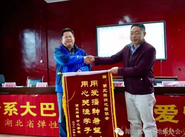 隨后,清太坪鎮(zhèn)黨委政府、教育發(fā)展助學基金協(xié)會和中心學校分別為湖北省彈性地板協(xié)會贈送錦旗,答謝協(xié)會對該鎮(zhèn)教育事業(yè)的慷慨支持和熱情關注。